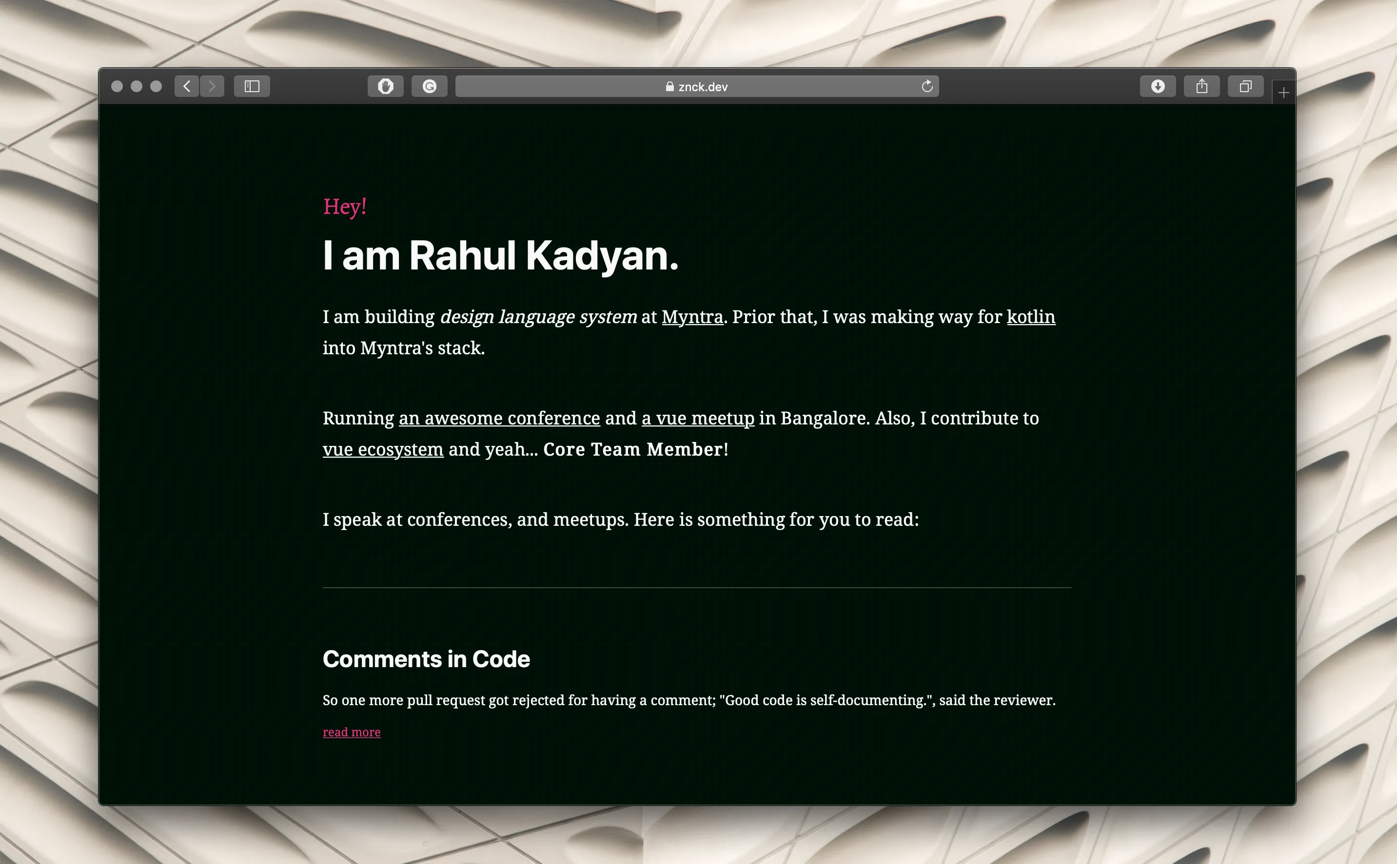 Screenshot: Dark Theme on znck.dev