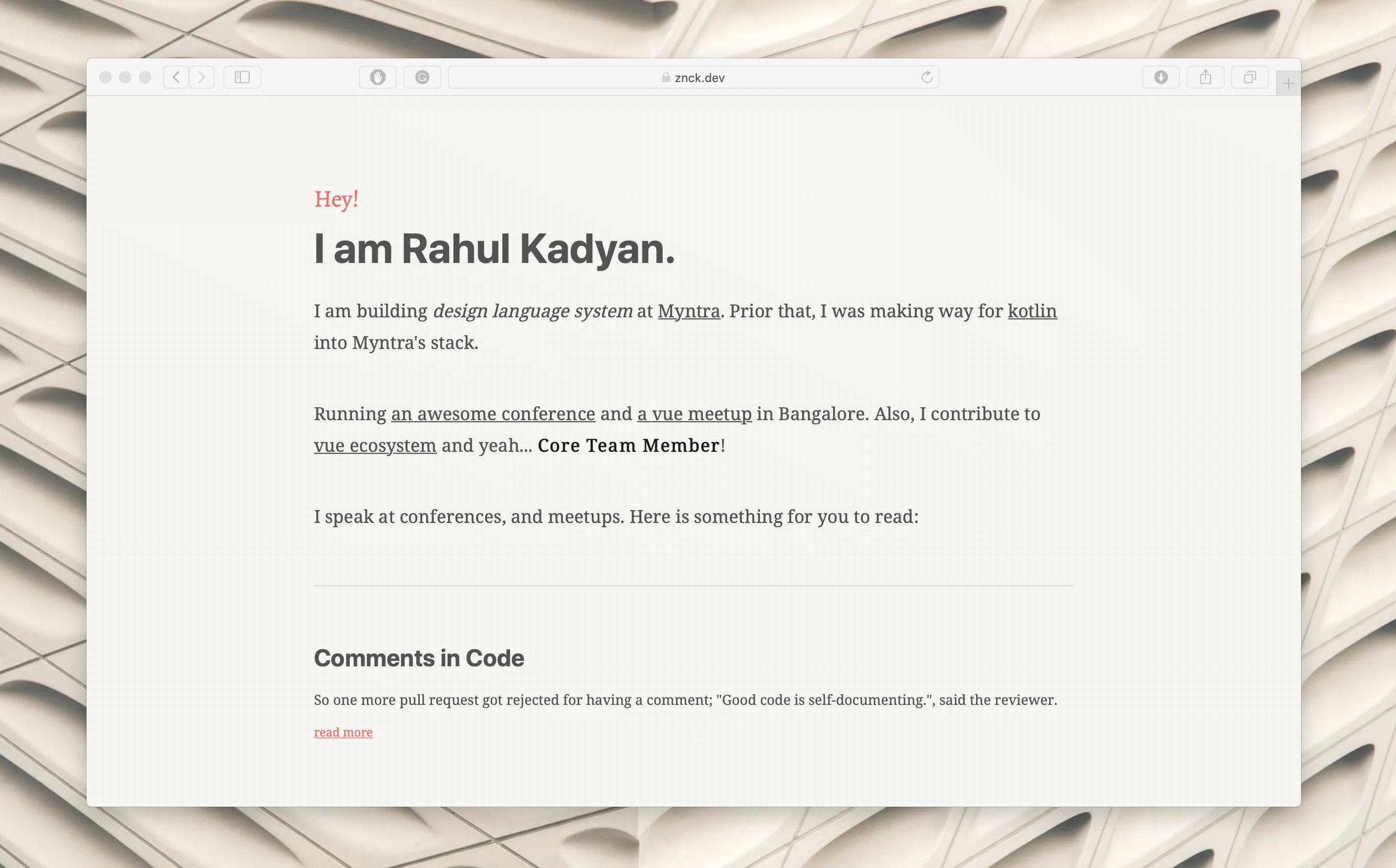 Screenshot: Default Theme on znck.dev