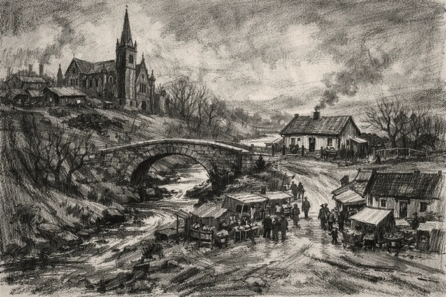 The story unfolds in a small Irish town in the 1980s—dark, coal-covered, cold. I could picture it so clearly: muddy roads, a ravine with a water stream splitting the town in half, connected by a stone bridge. On one side stands the convent, tall and pointy, imposing with its grandeur and mystery. On the other side, across that bridge, is Bill Furlong's modest home. The town market sits at a Y-shaped intersection, a big square where the forks meet, on the same side as Furlong's house at the bottom of the market street. The coal yard—Furlong's livelihood—lies further north of the convent, a liminal space connecting both worlds.